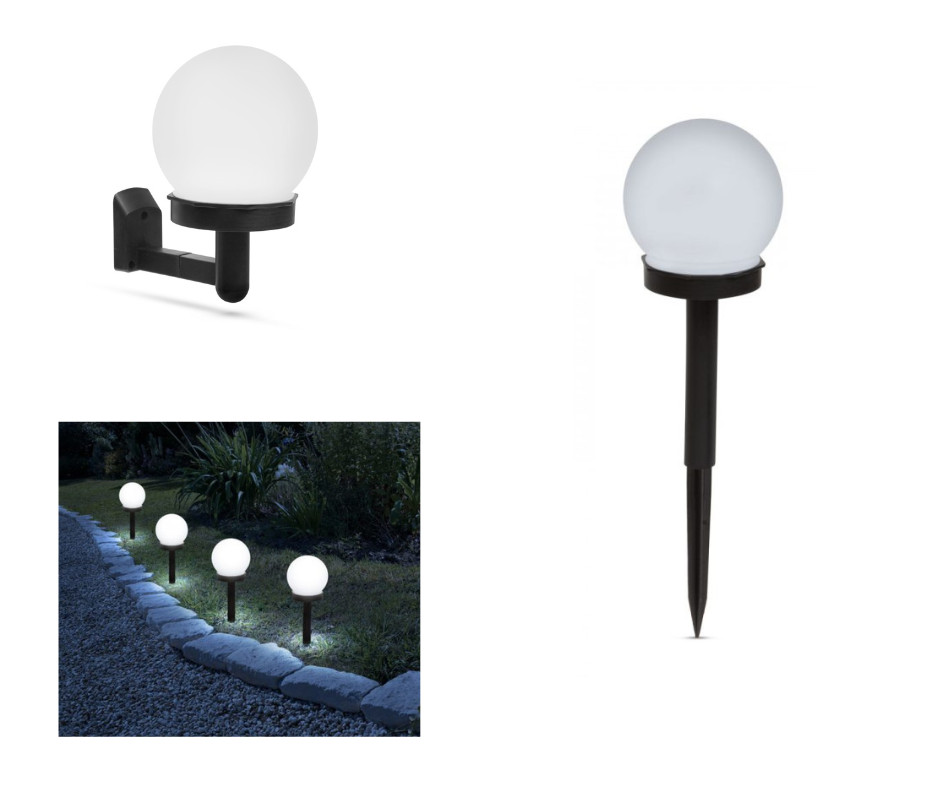 Bármely épület homlokzatán jól mutat ez a napelemek segítségével működő gömb alakú LED lámpa. A szolár paneleken át nappal feltöltődik az akkumulátor, amely sötétben megfelelő áramellátást biztosít a hidegfehér LED számára. A búrán belül található LED fényforrás egyenletesen világítja meg az opálos búrát. Kábelezést nem igényel, rögzítése csavarok segítségével történik.