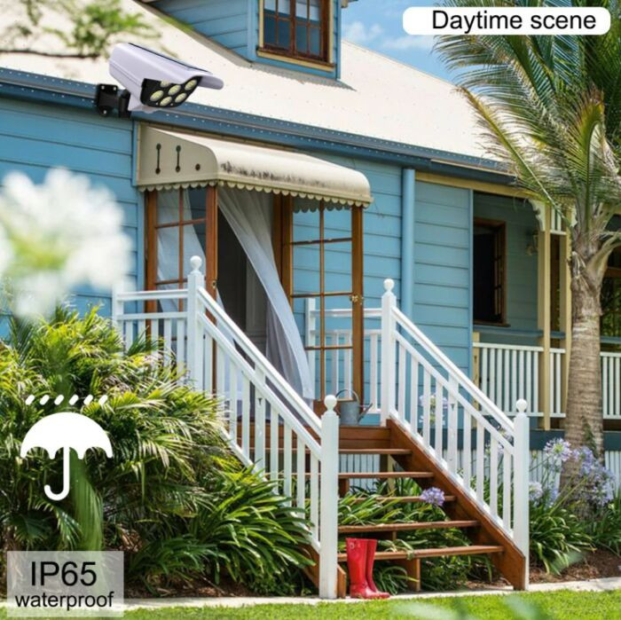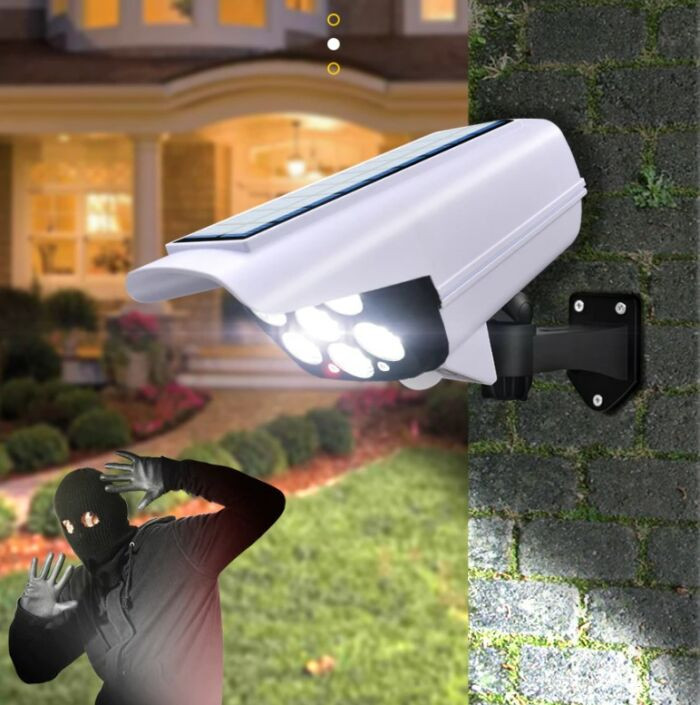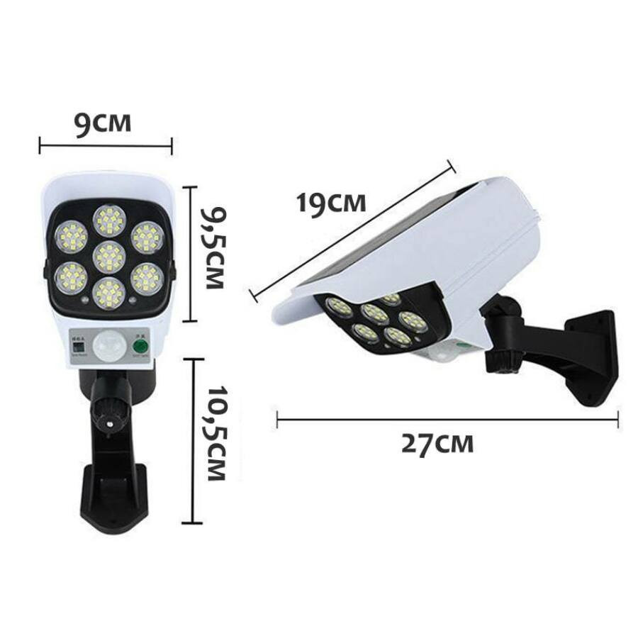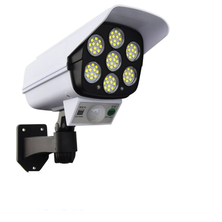 A fénypontja a CCTV kamerához hasonlít. Egy ilyen erős fény egy pillantással elriasztja a tolvajokat. Ezt az álkamerát leggyakrabban falra szerelik ajtó közelében, vidéki házban, erkélyen vagy lépcsőház közelében. A lámpa mozgás hatására önállóan kapcsol fel, ha egy személy hatósugáron belül tartózkodik. Ha abbahagyja a mozgást, a termék magától kikapcsol.